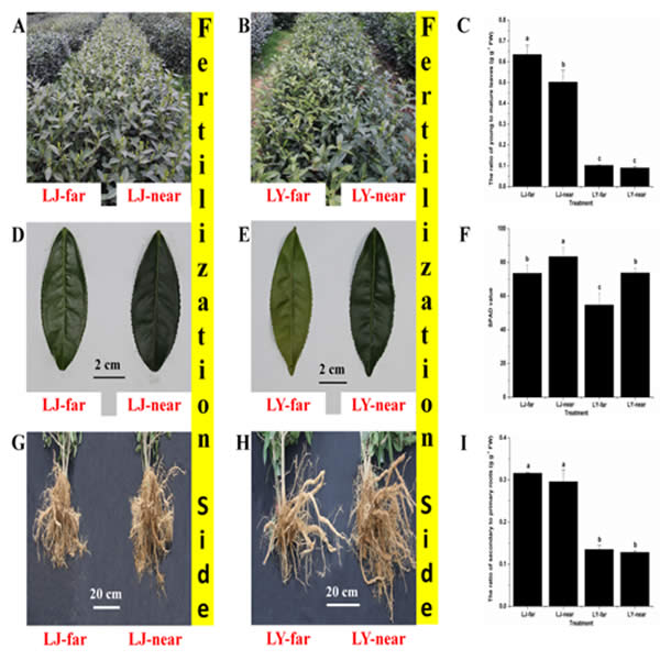 氮素對茶樹產量與茶葉品質具有十分重要的作用。茶園土壤氮素空間異質性普遍存在,長期的免耕等保護性耕作和肥料的條狀淺施導致土壤中氮素的空間分異加劇。并且,茶園普遍采用的雙行雙株側窩種植模式會加劇土壤氮素的空間異質性。因此,探析茶樹對土壤氮空間異質性的適應機制十分重要。近年來,我所茶樹遺傳育種團隊成浩課題組,對茶樹耐氮貧瘠的生理和分子響應機制做了系統研究,在茶樹對土壤氮空間異質性的適應機制方面取得了重要進展。
