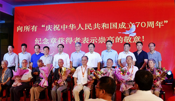 “慶祝中華人民共和國成立70周年”紀念章是以中共中央、國務(wù)院、中央軍委名義,向中華人民共和國成立前參加工作的、健在的老戰(zhàn)士老同志;中華人民共和國成立后獲得國家級表彰獎勵及以上榮譽并健在的人員;中華人民共和國成立后因參戰(zhàn)榮立一等功以上獎勵并健在的軍隊人員(含退役軍人)以及為中華人民共和國成立作出杰出貢獻的國際友人頒發(fā)的紀念獎?wù)隆?/p>