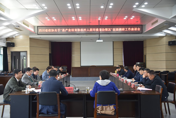 11月19日,由四川省政協(xié)副主席祝春秀率領(lǐng)的調(diào)研組在我所召開關(guān)于“茶產(chǎn)業(yè)培育和農(nóng)村人居環(huán)境整治情況”在浙調(diào)研工作座談會。浙江省農(nóng)業(yè)農(nóng)村廳、財政廳、建設(shè)廳、文旅廳相關(guān)部門負責人,我所姜仁華書記、阮建云副所長、陳宗懋院士參加座談會。浙江省政協(xié)、農(nóng)業(yè)和農(nóng)村委員會專職副主任孫勤明主持會議。
