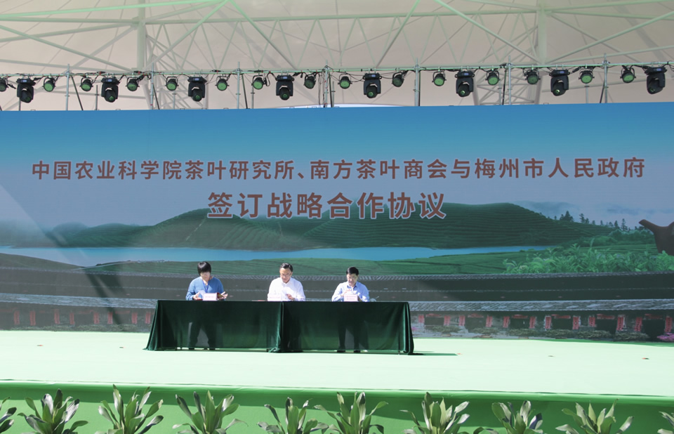 11月1日,在第三屆廣東茶葉產(chǎn)業(yè)大會開幕式上,我所與梅州市人民政府簽署促進(jìn)梅州茶產(chǎn)業(yè)發(fā)展戰(zhàn)略合作協(xié)議,副所長魯成銀和梅州市副市長溫向芳分別代表雙方簽字。廣東省政府副秘書長鄭偉儀,廣東省農(nóng)業(yè)農(nóng)村廳廳長顧幸偉、副廳長馮彤,梅州市委書記陳敏、市長張愛軍,陳宗懋院士、劉仲華院士等領(lǐng)導(dǎo)和專家出席。